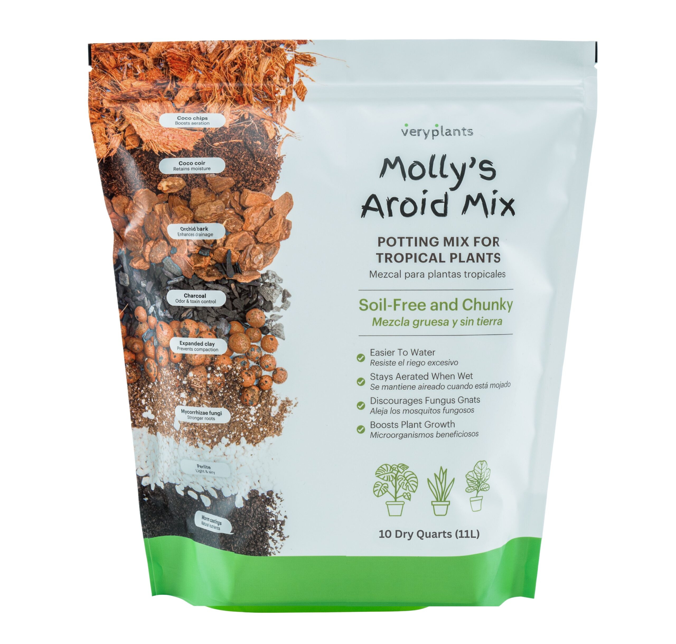 Extended Potting Mix Life: Molly’s Aroid Mix incorporates durable and long-lasting ingredients that decompose slowly. This quality extends the period between potting mix replacements, offering convenience and cost savings while minimizing plant stress.